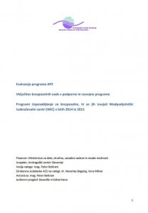 Tokrat gre za evalvacijo programa Vključitev brezposelnih oseb v podporne in razvojne programe. Osredotoča se na programe Usposabljanja za brezposelne, ki so jih izvajali Medpodjetniški izobraževalni centri (MIC) v letih 2014 in 2015, izvedbe pa je financiralo Ministrstvo za izobraževanje, znanost in šport (MIZŠ).