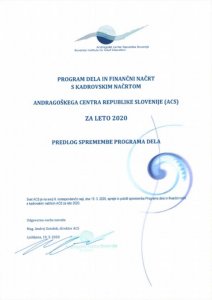 Svet Andragoškega centra Slovenije (ACS) je na svoji 9. korespondenčni seji, ki je bila 19. marca 2020, sprejel in potrdil spremembe Programa dela in finančni načrt s kadrovskim načrtom ACS za leto 2020.