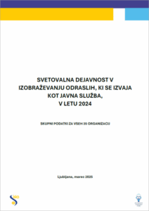 Poročilo vsebuje pregled o izvajanju svetovalne dejavnosti v izobraževanju odraslih, ki se izvaja kot javna služba, za leto 2024. Svetovalna dejavnost v izobraževanju odraslih se izvaja na treh področjih, in sicer pri vključevanju v izobraževanje in nadaljevanju izobraževanja, ugotavljanju in dokumentiranju znanja in spretnosti ter samostojnem učenju. Dejavnost je izvajalo 35 javnih organizacij za izobraževanje odraslih po celotni Sloveniji. S tem je dostopna vsem prebivalcem Slovenije.