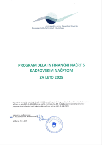Svet Andragoškega centra Slovenije (ACS) je na svoji 2. redni seji dne, 6. marca 2025, sprejel in potrdil Program dela in finančni načrt s kadrovskim načrtom za leto 2025. Na 3. redni seji dne, 23. aprila 2025, je sprejel in potrdil Spremembe programa dela in finančni načrt s kadrovski načrtom za leto 2025.