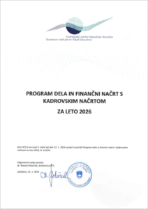 Svet Andragoškega centra Slovenije (ACS) je na svoji 5. redni seji dne, 22. januarja 2026, sprejel in potrdil Program dela in finančni načrt s kadrovskim načrtom za leto 2026.
