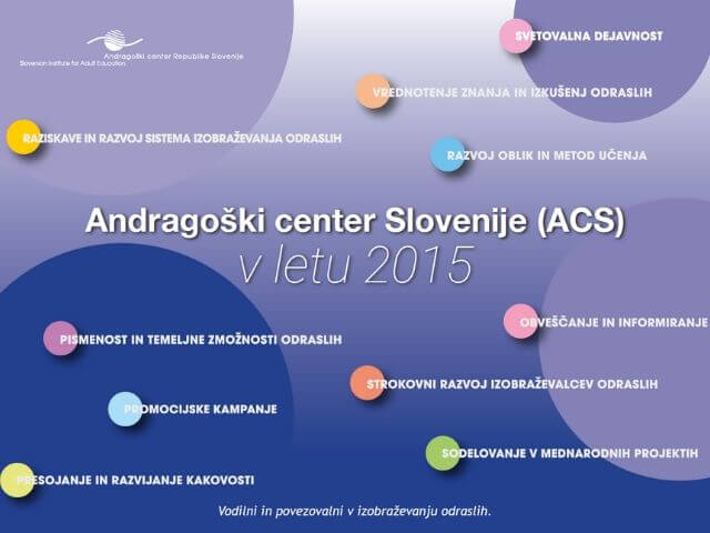 V informativno-promocijski brošuri je na kratko predstavljeno: usposabljanje in spopolnjevanje izobraževalcev odraslih na ACS (namen dejavnosti, vrste usposabljanja in spopolnjevanja,...