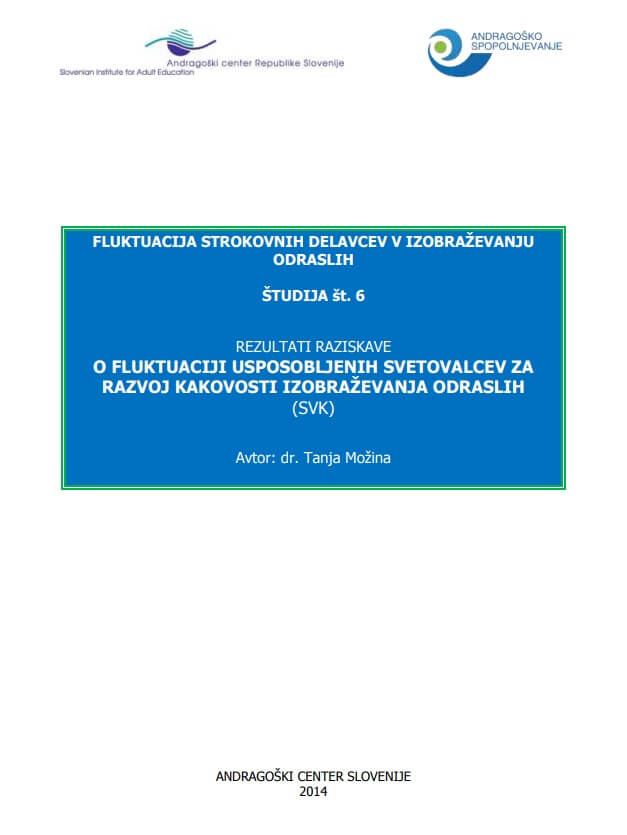 Fluktuacija strokovnih delavcev v izobraževanju odraslih. Študija št. 6, Rezultati raziskave o fluktuaciji usposobljenih svetovalcev za razvoj kakovosti izobraževanja odraslih (SVK)
