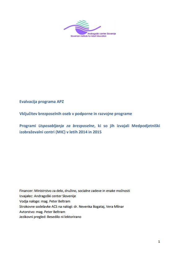 V obdobju med letoma 2012 in 2016 se je v ekspertne zunanje evalvacije na področju izobraževanja odraslih vključilo 13 izobraževalnih...