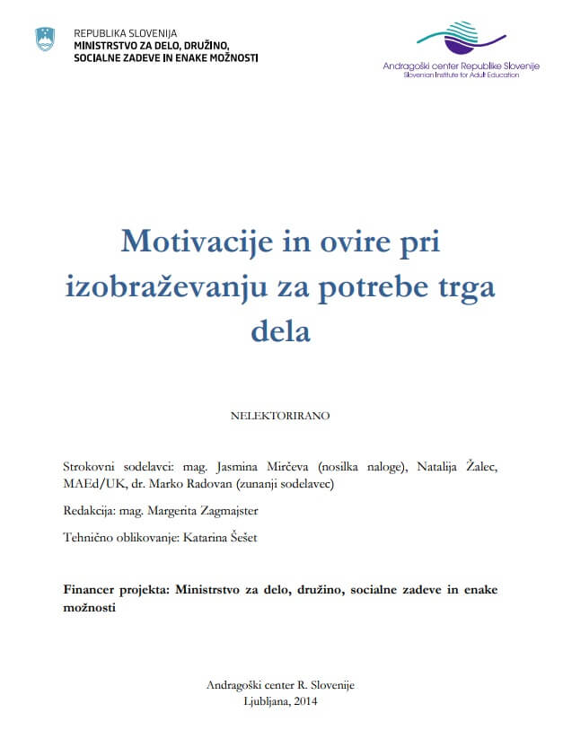 Ugotavljanje in priznavanje neformalnega učenja odraslih od 2012 do 2014 je ena od dveh aktivnosti, ki smo ju na Andragoškem...
