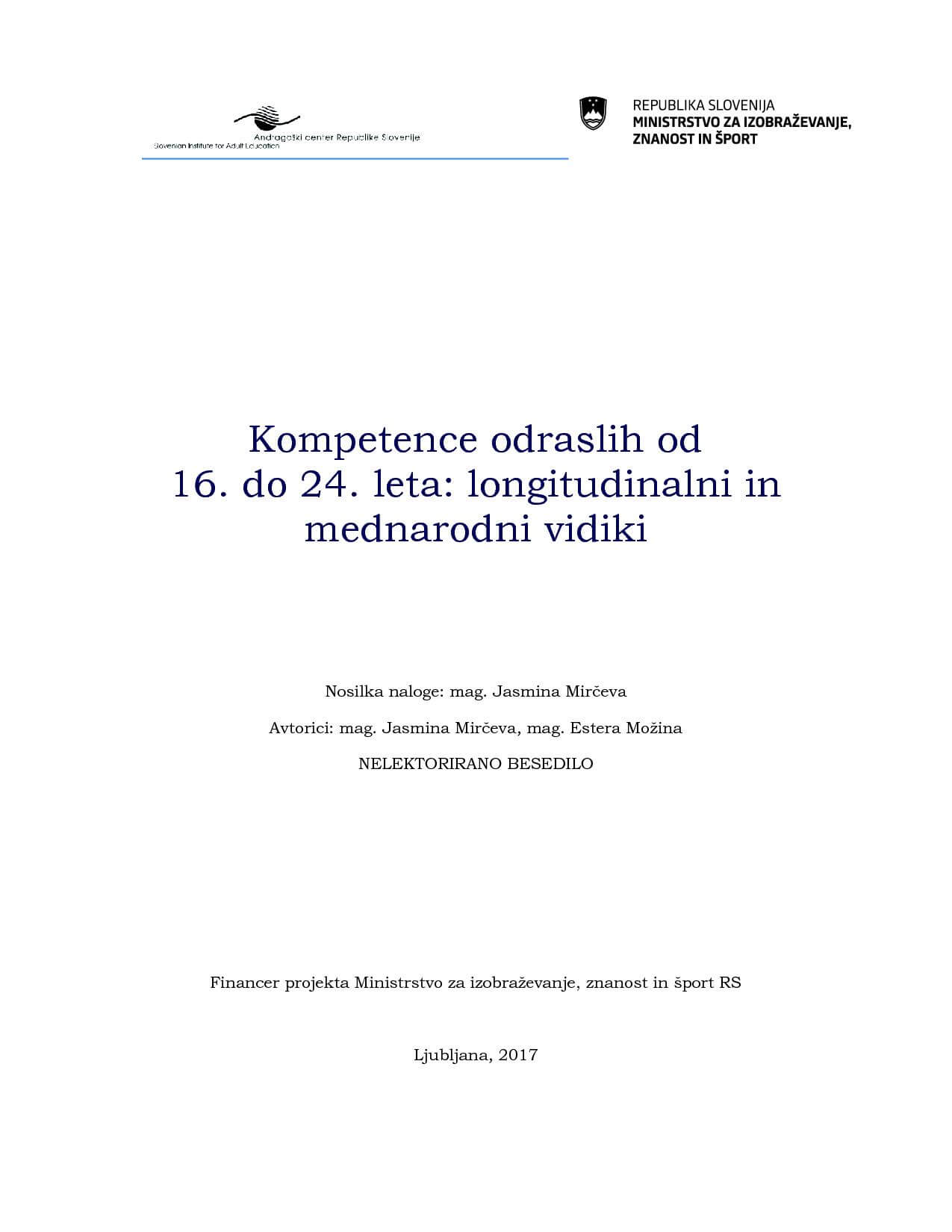 Poročilo o raziskavi Spretnosti odraslih PIAAC 2016. Tematske študije