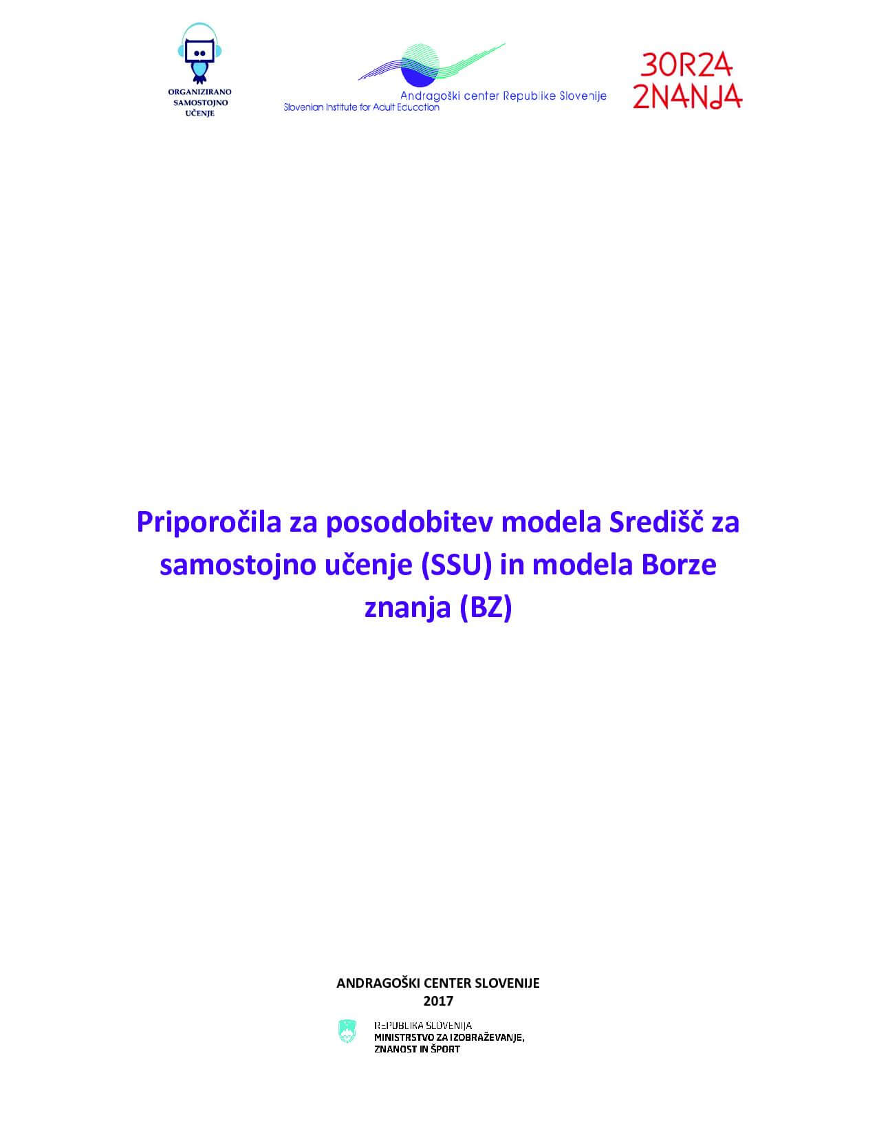 Strokovne podlage za posodobitev programa temeljnega usposabljanja za strokovne delavce Središč za samostojno učenje (SSU), v skladu s smernicami so...