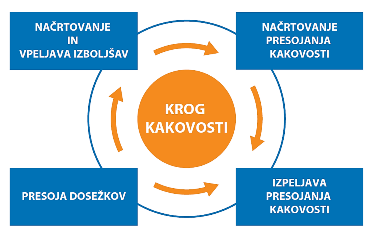 - vpeljati način, s katerim izobraževalna organizacija pridobi kakovostno zunanjo povratno informacijo o tem, kje je že dobra, kje pa se kažejo možnosti za njen nadaljnji razvoj.
